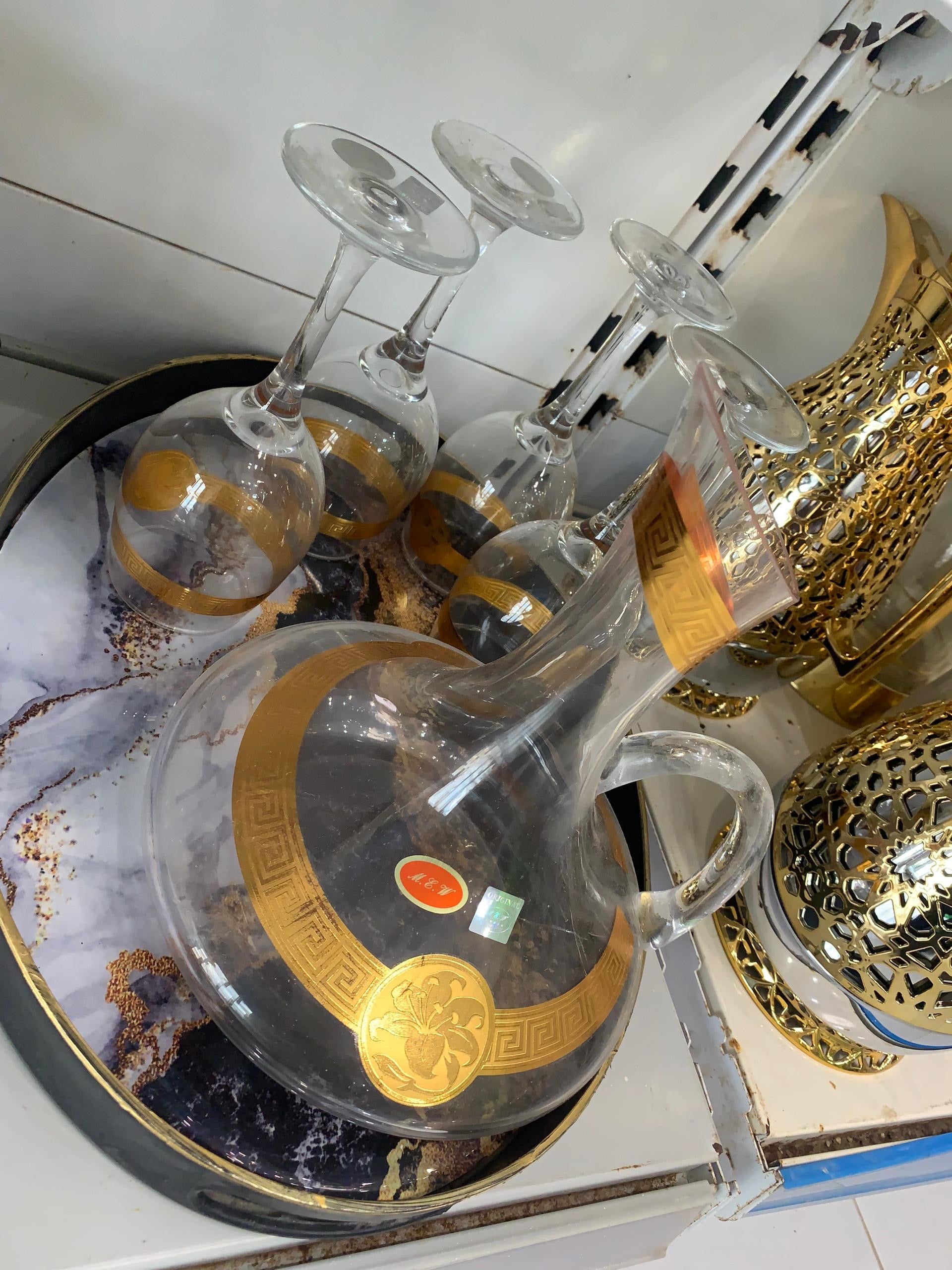 Carafe & Verres à Vin – Design Royal Doré