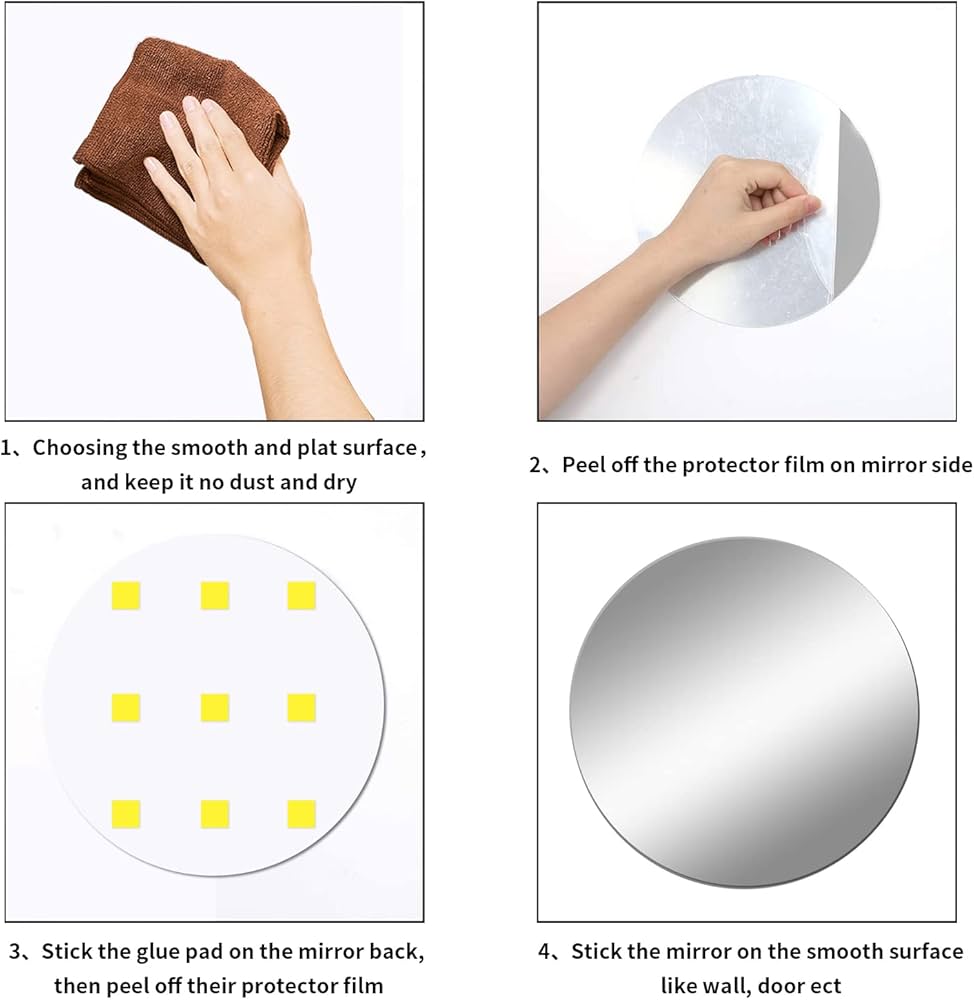 Miroir mural rond autocollant, grand miroir sans verre