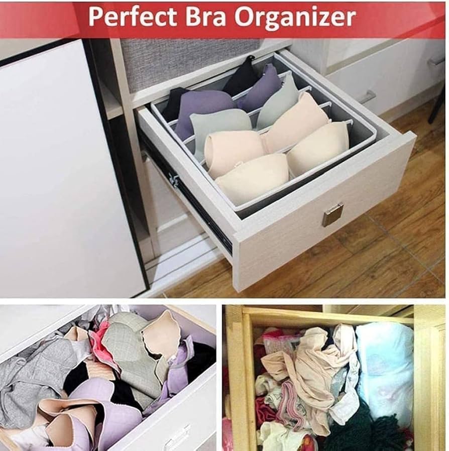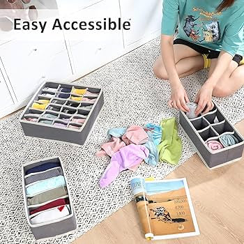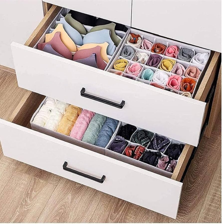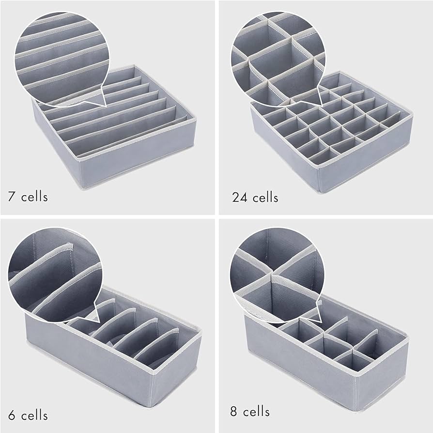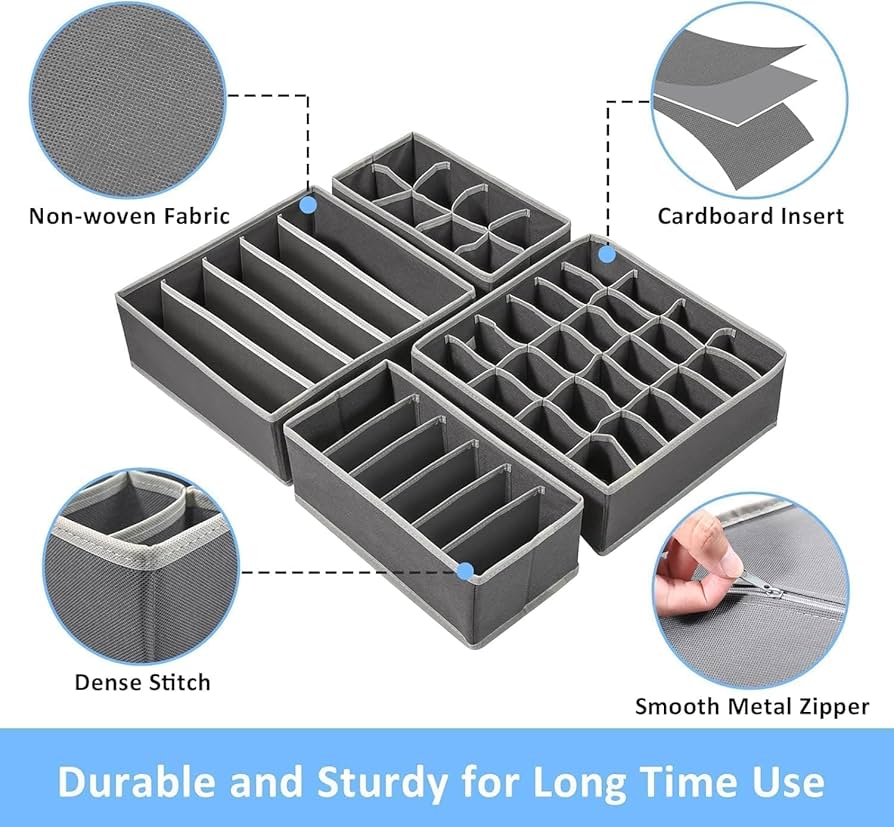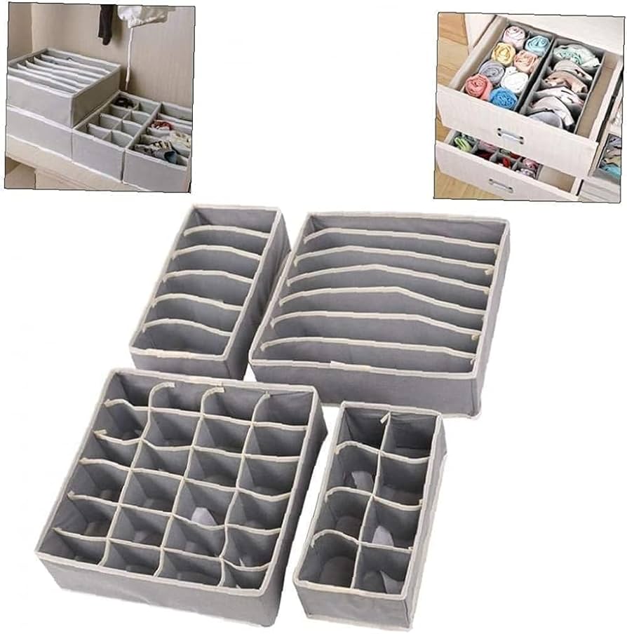 STORESLA™ Organisateur de tiroir 4 pièces, boîte de rangement pour vêtements et sous-vêtements, séparateur de tiroir pour jupes, chaussettes, soutiens-gorge, culottes et foulards (gris clair)